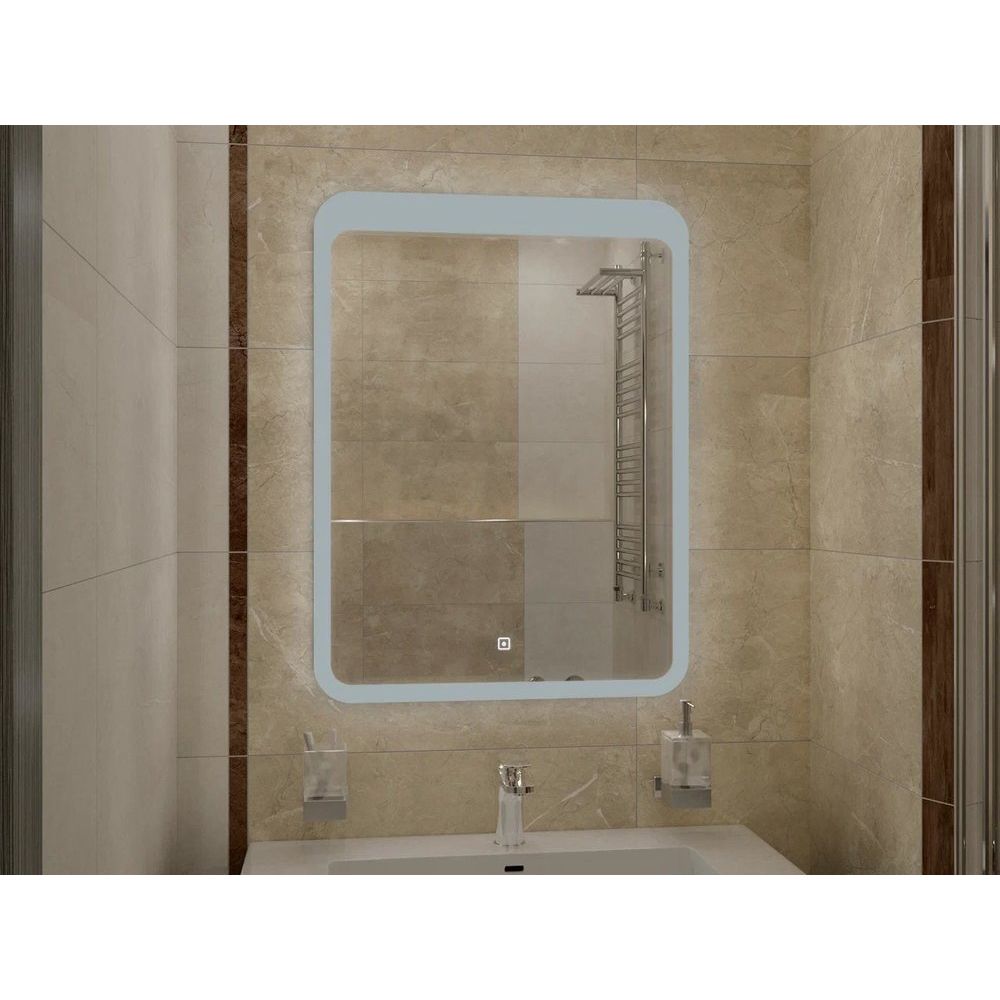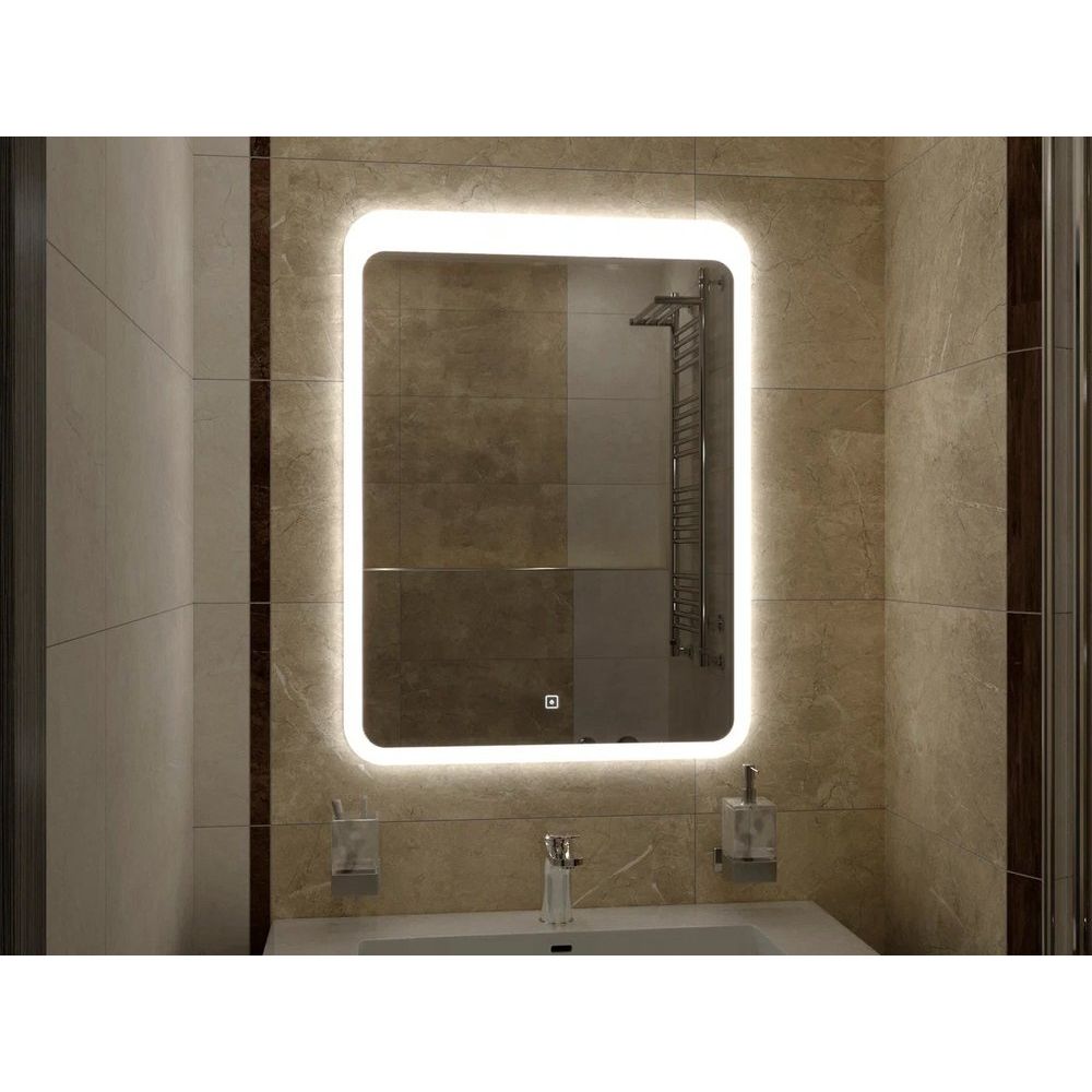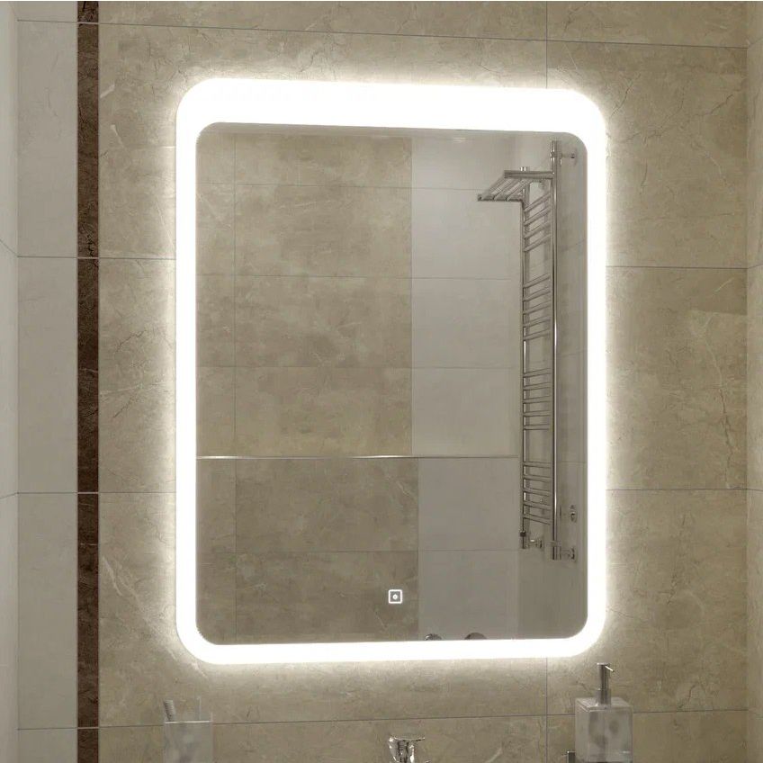 Зеркало имеет размеры 60x80 см, что делает его универсальным для разных по размеру ванных комнат. Толщина полотна 4 мм обеспечивает отличное качество отражения без искажений. Холодная температура подсветки — 6000K, регулируемая благодаря плотности светодиодной ленты в 120 диодов на метр. Потребляемая мощность составляет всего 25 Вт, что делает зеркало энергоэффективным. Корпус изготовлен из АБС-пластика, что добавляет прочности и легкости конструкции. Встроенные подвесы делают установку легкой и быстрой.