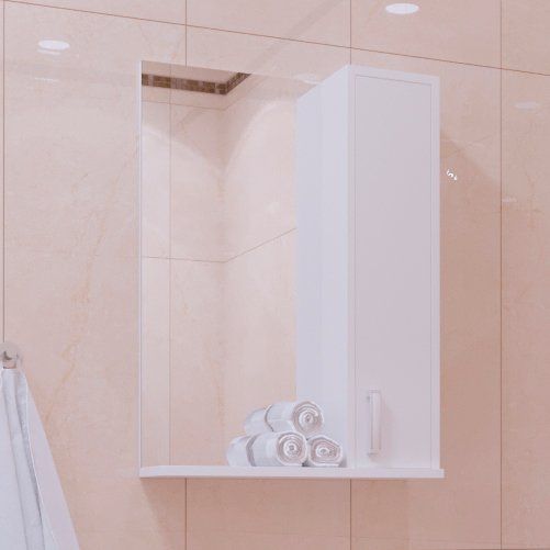 Зеркало имеет компактные размеры 50x16x70 см, что делает его подходящим для установки даже в небольших ванных комнатах. Корпус выполнен из надежного ЛДСП и покрыт защитной пленкой, которая не только выглядит современно, но и защищает от влаги и повреждений. Белая фурнитура идеально дополняет общее стилистическое решение.
