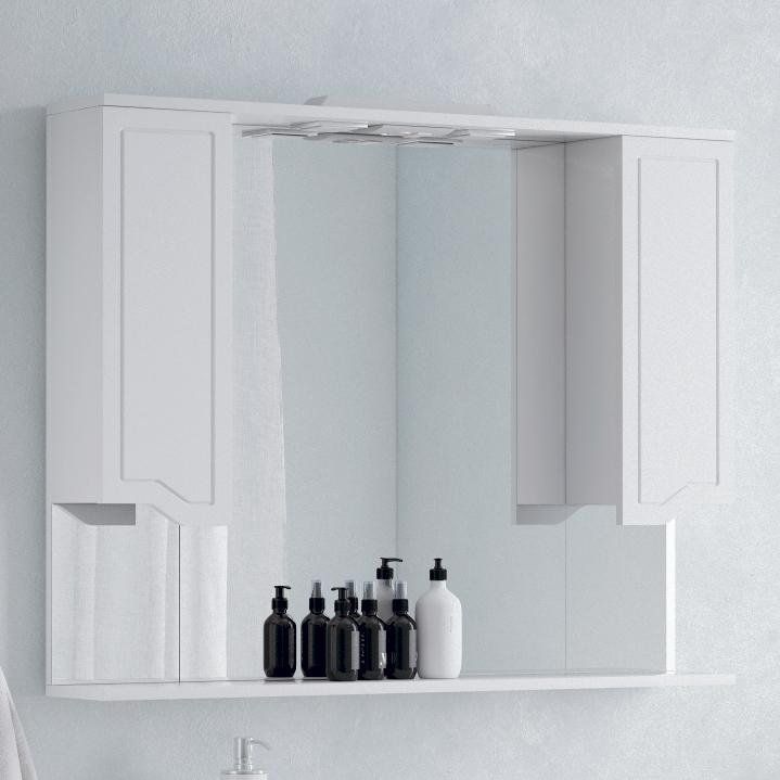 Зеркало Corozo Мирра 105/С белое имеет габариты 105 см в ширину, 17 см в глубину и 81,5 см в высоту. Оно изготовлено из прочного ЛДСП с ламинатным покрытием, что обеспечивает устойчивость к влаге и легкость в уходе. Зеркало оборудовано механическим электровыключателем и розеткой для вашего удобства. Оно подвесное, что позволяет легко закрепить его на стене. Гарантия от производителя составляет 1 год.