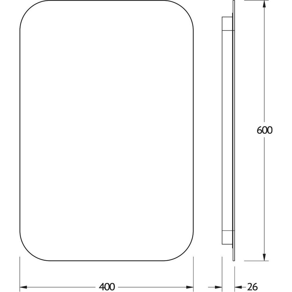 Зеркало имеет размеры 40х2,6х60 см и оснащено подсветкой за полотном. Лёгкое касание сенсорной кнопки позволяет включать или выключать освещение, а также регулировать его яркость благодаря встроенному диммерному сенсору. Подвесное крепление обеспечивает простоту установки. На изделие распространяется гарантия сроком на 1 год.