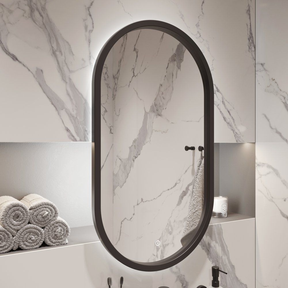 Ищете способ добавить изюминку и стиль в вашу ванную комнату, не загромождая пространство? Зеркало DIWO «Казань 45» — это ультрасовременное решение, которое гармонично вписывается в интерьер любого помещения благодаря своему лофтовому дизайну и продуманной функциональности. Овальная форма и черное обрамление создают неповторимый облик, с которым любое пространство будет выглядеть продуманно и эстетично. Особую атмосферу вашему интерьеру придаст ореольная LED-подсветка, создавая эффект парящего зеркала — особенно впечатляющий в вечернее время. Сенсорная кнопка упростит управление подсветкой, позволяя легко регулировать её яркость.