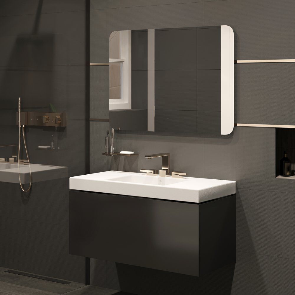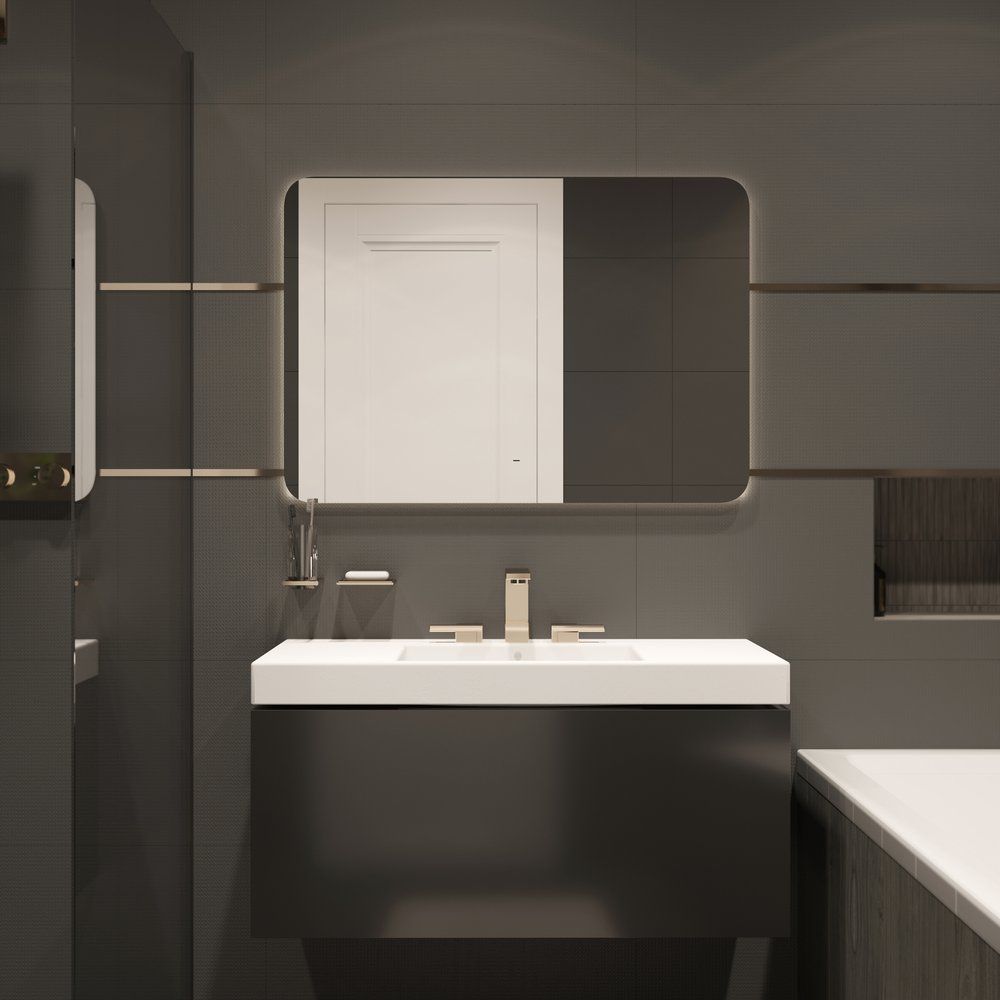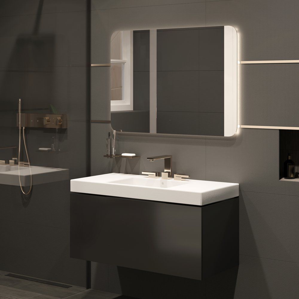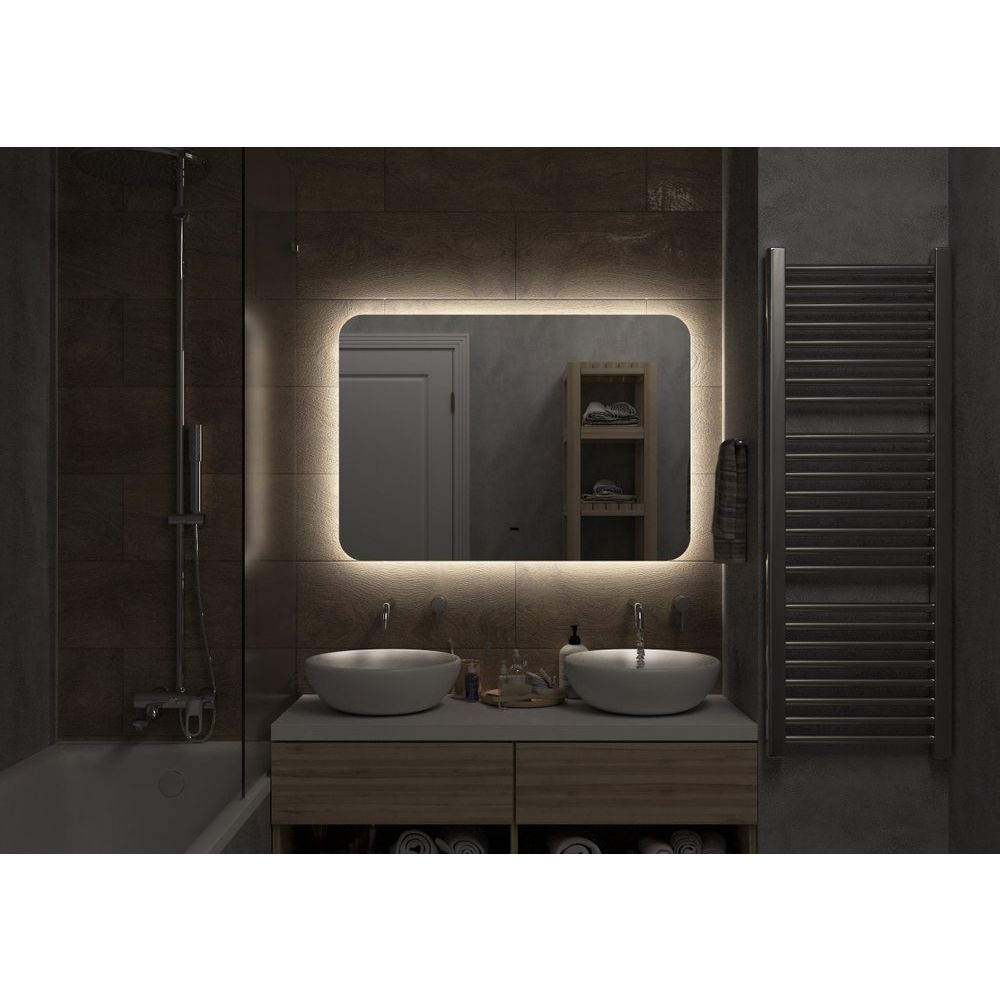 - Подсветка интегрирована за зеркальным полотном и регулируется для создания настроенного освещения.