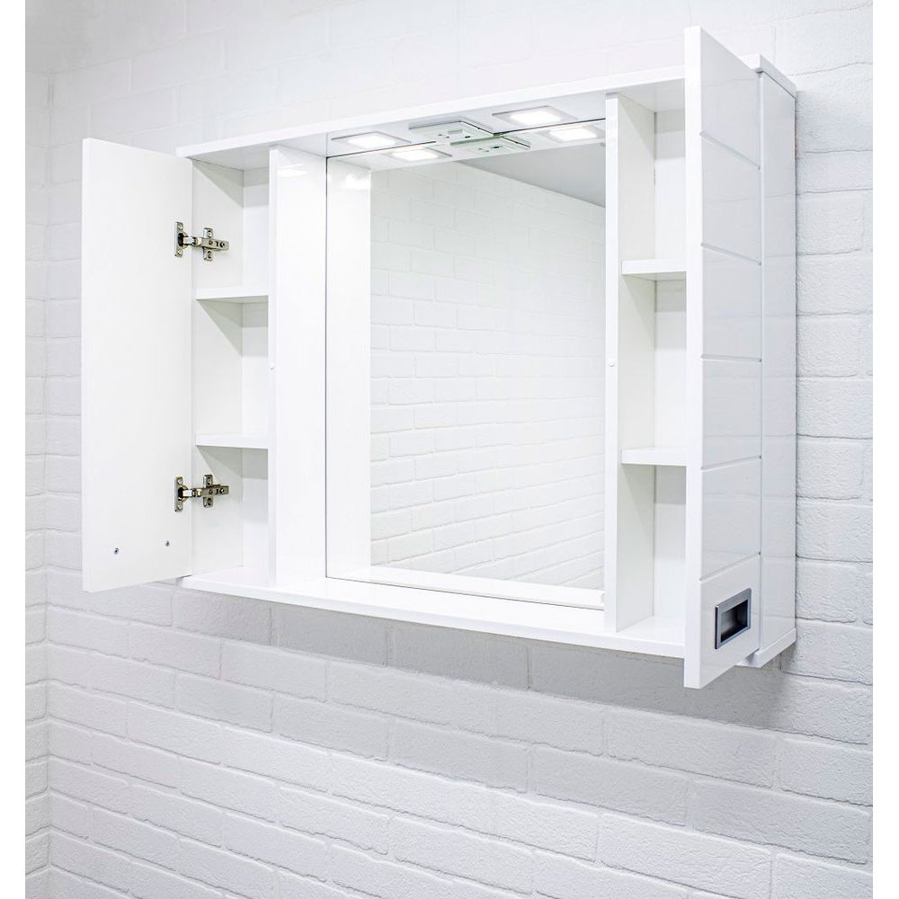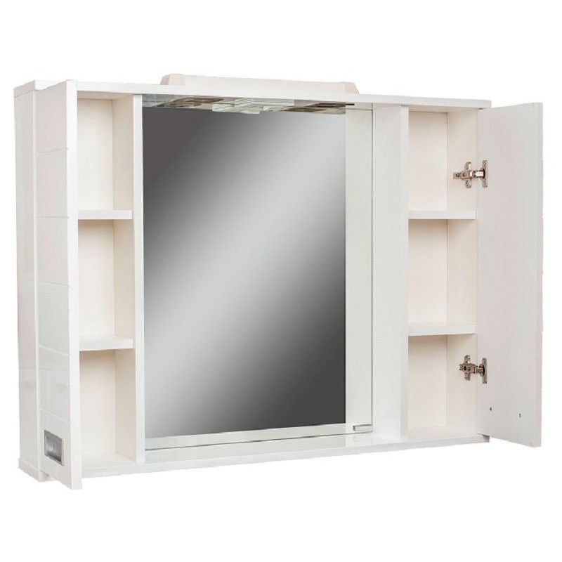 Зеркало от бренда Домино из коллекции Cube выполнено в стильном минималистичном дизайне. Габариты изделия составляют 90,4 х 14,8 х 70,2 см, что позволяет ему органично вписаться в интерьер любой ванной. Корпус из ЛДСП покрыт эмалью, обеспечивающей защиту от влаги. Встроенная подсветка управляется механической кнопкой. Хромированная фурнитура и механизм доводчика добавляют удобства и долговечности. Зеркало также оснащено розеткой и подвесами, что значительно упрощает его установку.