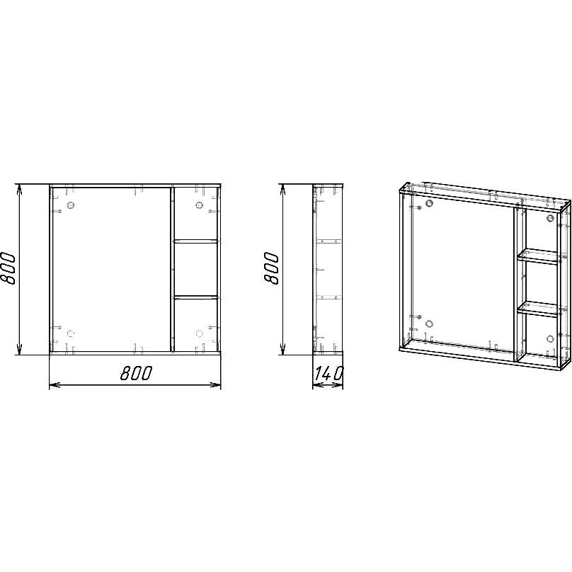 Зеркало имеет размеры 80x14x80 см, что делает его компактным и удобным в использовании. Корпус выполнен из ламинированного ЛДСП, что добавляет устойчивости к влаге и механическим повреждениям. Зеркало устанавливается с помощью удобных подвесов, однако в комплектацию не включена подсветка, что позволяет вам самостоятельно выбрать подходящее освещение.