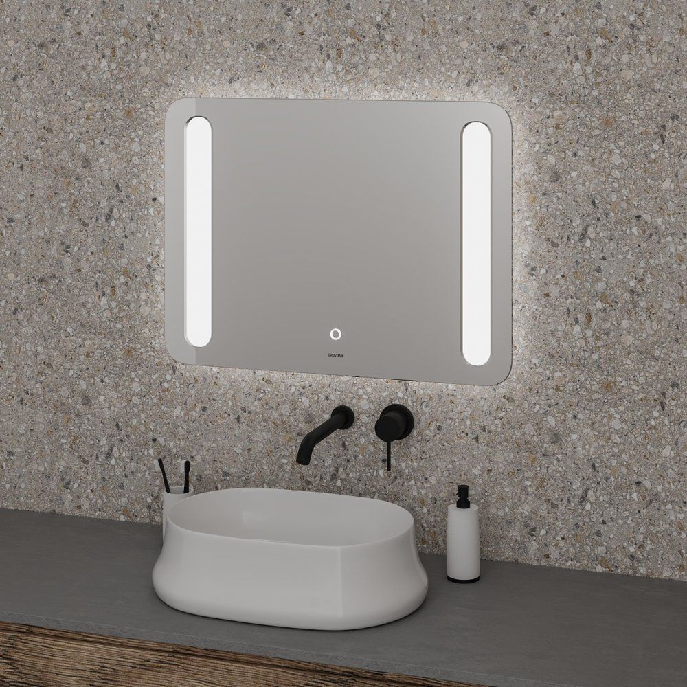 Зеркало Grossman Lara 100х80 с подсветкой — это идеальное решение для стильного и функционального оформления ванной комнаты. Это зеркало не только добавит света и визуально увеличит пространство, но и станет элегантным акцентом вашего интерьера. Интегрированная подсветка позволяет создать уютную атмосферу и обеспечить равномерное освещение, а сенсорный выключатель делает управление интуитивно понятным и удобным.