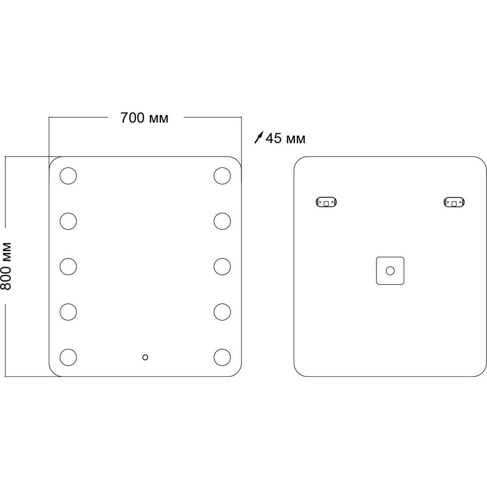 Зеркало имеет размеры 70x4,5x80 см, что обеспечивает оптимальное соотношение площади и эргономичности. Корпус изделия изготовлен из прочного АБС-пластика, известного своей устойчивостью к влаге и долговечностью. Подвесная конструкция позволяет с легкостью разместить зеркало на стене, добавляя интерьеру ванной комнаты дополнительную глубину. Сенсорный выключатель встраивается непосредственно в полотно зеркала, что делает управление освещением простым и интуитивным. На изделие предоставляется гарантия сроком на 1 год.
