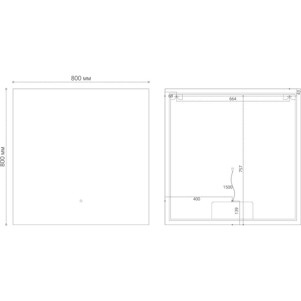Зеркало имеет размеры 80x80 см и толщину 3 см, что делает его идеальным для средних и больших ванных комнат. Корпус выполнен из прочного АБС-пластика, который обеспечивает долговечность и устойчивость к влаге. Подвесная установка облегчает монтаж, а сенсорное управление позволяет легко включать и выключать подсветку одним легким касанием.