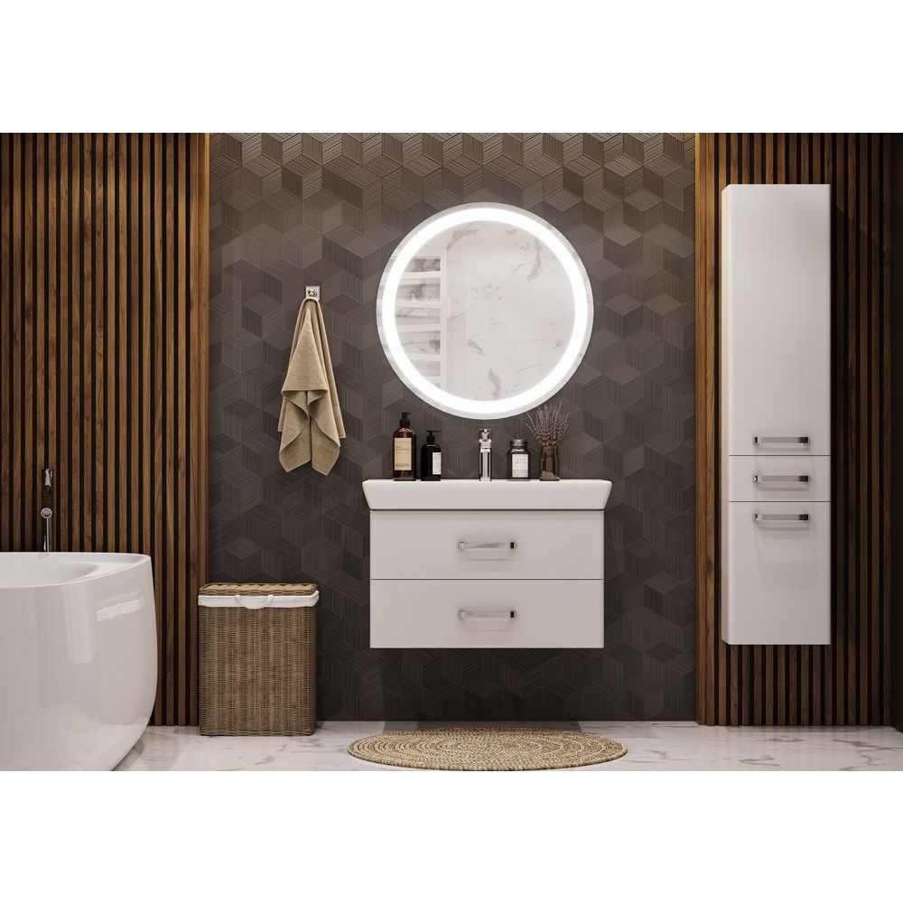 Погрузитесь в мир утончённого дизайна с круглым зеркалом AQUATON Анелло 75. Это зеркало не только подчеркнёт элегантность вашей ванной комнаты, но и создаст атмосферу уюта благодаря встроенной светодиодной подсветке. Сенсорное управление позволяет с лёгкостью включать и регулировать световой поток по вашей мере настроения. Система антизапотевания Antisteam обеспечит кристально чистую поверхность в любую погоду, а нейтральная температура свечения в 4500К идеально подходит для комфортного восприятия глаз. Будучи защищённым по стандартам IP44, зеркало выдержит испытания влажной среды с достоинством.