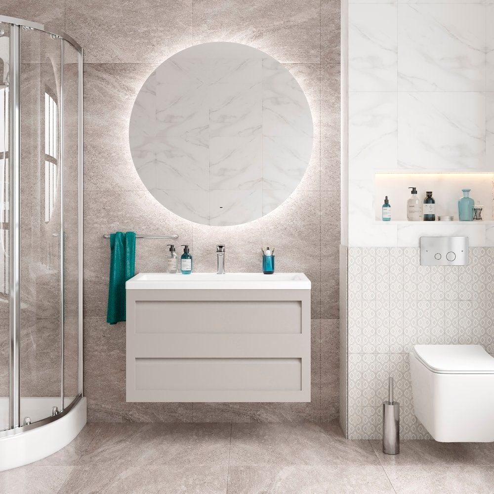 Зеркало Art&Max Sanremo имеет круглую форму с размерами 100x3x100 см, что делает его подходящим для любого интерьера ванной комнаты. Корпус изготовлен из прочного пластика, что обеспечивает его легкость и устойчивость к влаге. Монтируемая на короб 36-ваттная светодиодная лента гарантирует равномерное освещение, а продуманные подвесы упрощают установку зеркала.