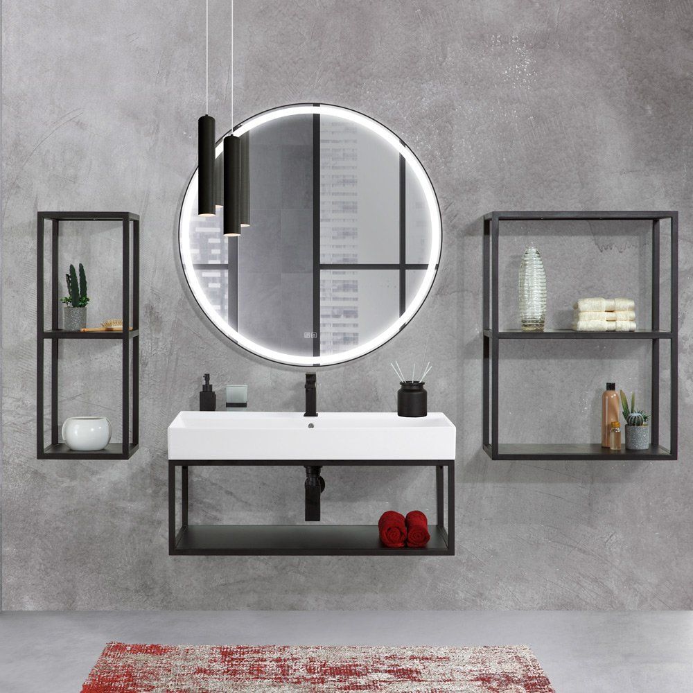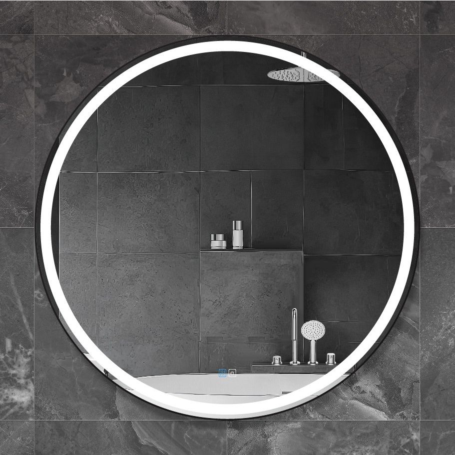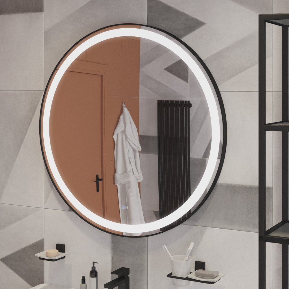 Зеркало круглой формы имеет размеры 90,7x3x90,7 см, что позволяет разместить его даже в компактных ванных комнатах. Корпус выполнен из металла, защищенного порошковым покрытием, что обеспечивает его стойкость к коррозии и внешним воздействиям. Оборудованное сенсорным выключателем, зеркало включается легким касанием - это удобно и современно. Подвесная конструкция зеркала дополнительно облегчает установку, а продуманное расположение подвесов гарантирует надежную фиксацию на стене.
