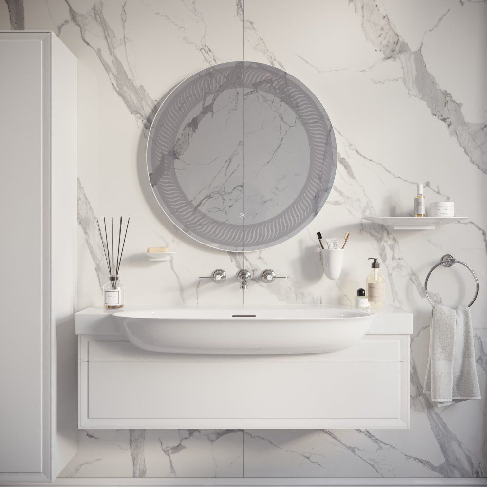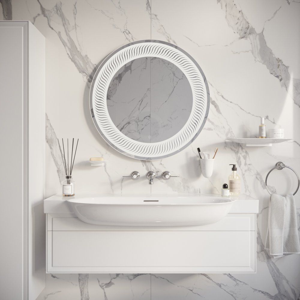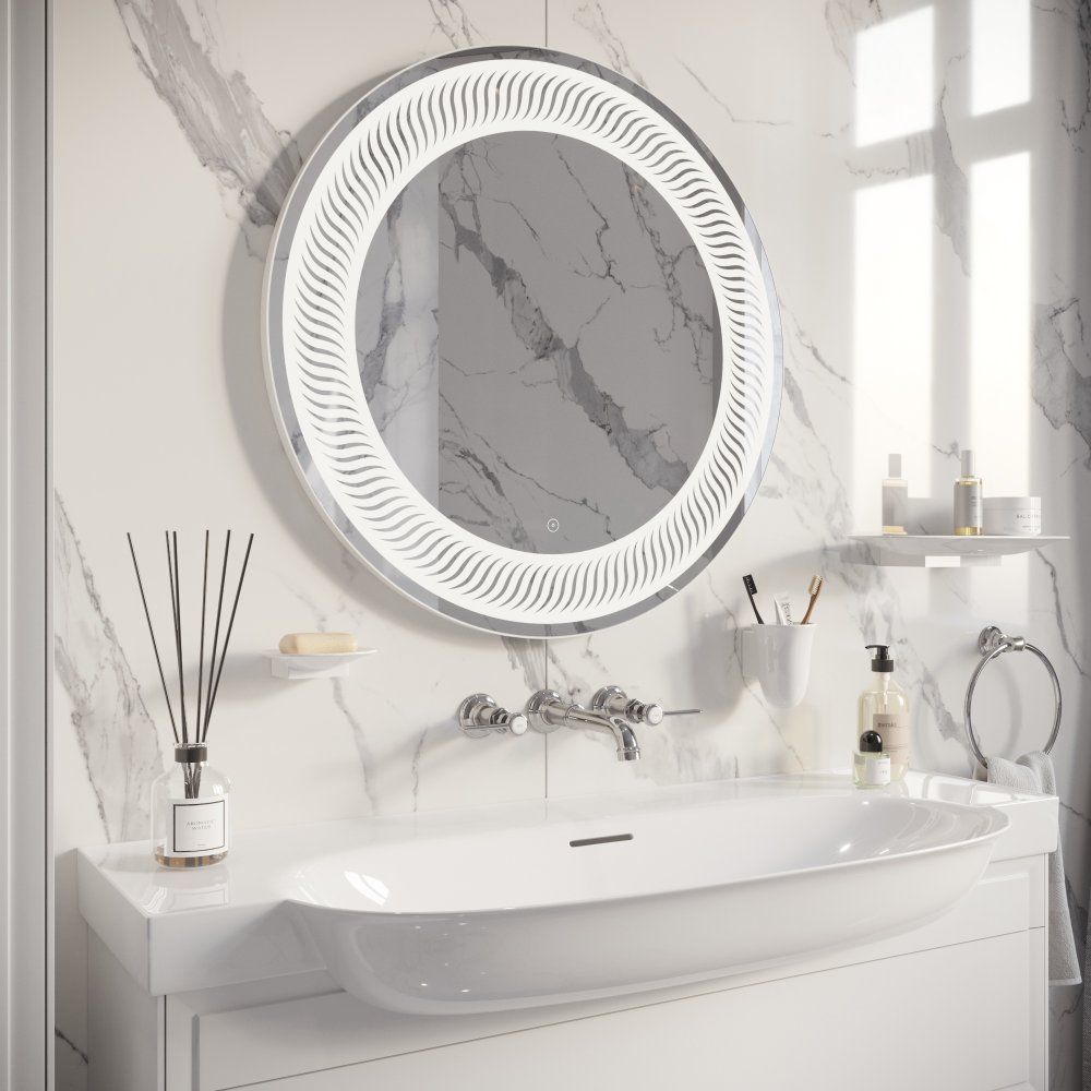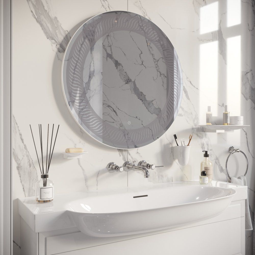 Круглое зеркало DIWO «Тула 77» — это не просто функциональный элемент ванной комнаты, а настоящее произведение искусства. Его необычный дизайн отлично вписывается в классические интерьеры и обстановку в стиле ар-деко. Декоративный узор в виде рамы и фронтальная LED-подсветка придают зеркалу особый шарм, создавая уютную атмосферу с мягким, регулируемым светом, который льется сквозь узор. Управлять яркостью просто и удобно с помощью сенсора на лицевой панели. Электронные компоненты аккуратно скрыты в пластиковом корпусе, что делает зеркало безопасным для использования во влажных помещениях. Оптимальная толщина зеркального полотна — 4 мм — обеспечивает устойчивость к деформации и отсутствие искажений в отражении. Края зеркала обработаны по технологии еврокромки, исключая риск случайных порезов. В комплект входят надежные подвесы для комфортной установки.