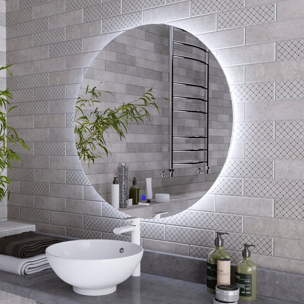 Зеркало круглое с диаметром 80 см и толщиной 4,5 см прекрасно встраивается в любую ванную комнату. Корпус выполнен из прочного АБС-пластика, что обеспечивает его легкость и долговечность. Подсветка встроена прямо в полотно, создавая атмосферное сияние. Управление осуществляется с помощью легкого касания благодаря сенсорной кнопке.