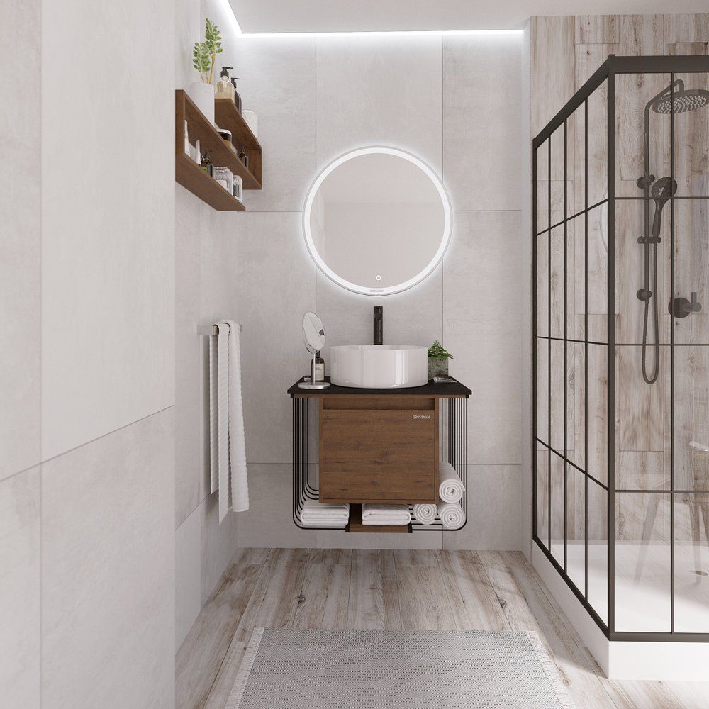 Зеркало круглое Grossman Sento 70 — это стильный и практичный элемент вашей ванной комнаты от известного немецкого производителя. Это не просто зеркало, а настоящее дополнение вашего интерьерного решения, соединяющее дизайн и инновации. Круглая форма и минималистичный стиль гармонично впишутся в любой современный интерьер, а встроенная подсветка придаст ещё больше уюта и функциональности вашему пространству.