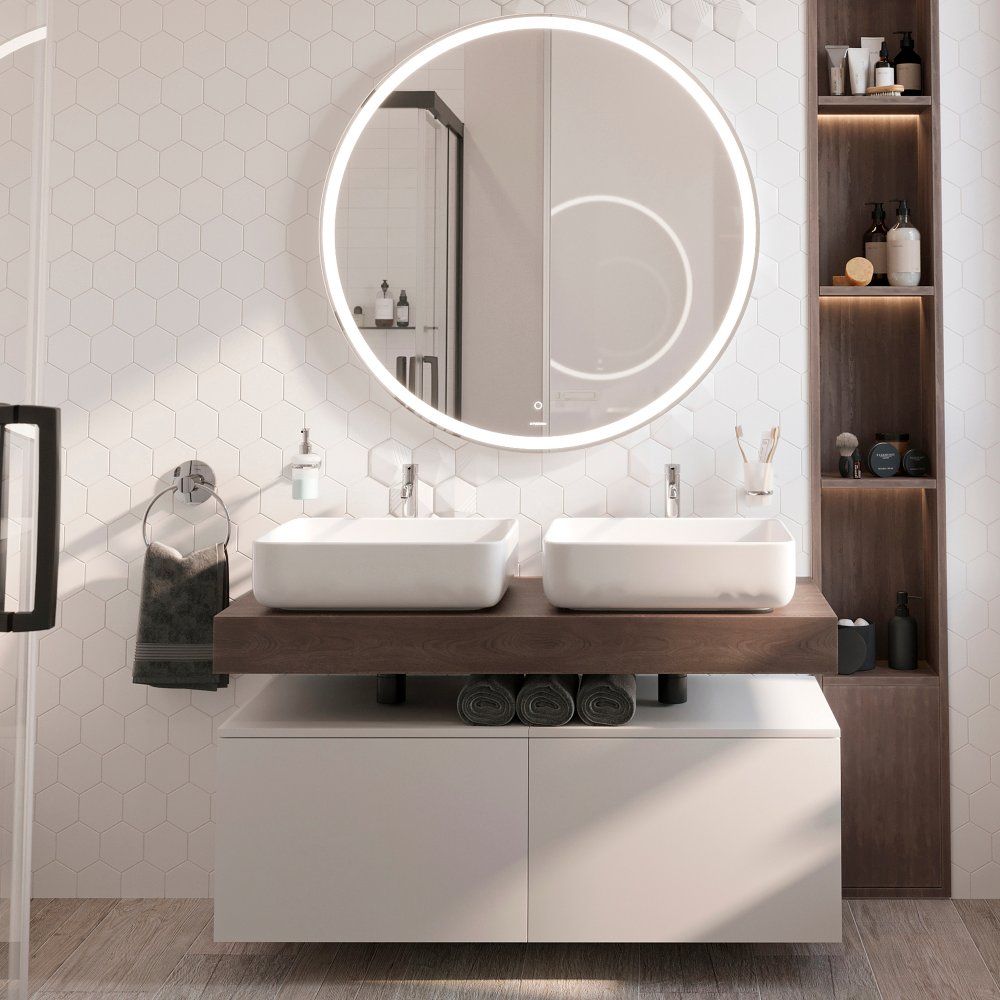Познакомьтесь с зеркалом круглой формы STWORKI Мальмё 100, которое станет отличным решением для вашего минималистичного интерьера. Это зеркало уникально не только своим современным дизайном, но и продуманной светодиодной подсветкой, которая обеспечивает белоснежное свечение и создаёт уютную атмосферу в ванной комнате. С помощью сенсорного выключателя вы с лёгкостью сможете регулировать яркость, подстраивая её под ваши нужды: от мягкого света до более интенсивного для точных косметических процедур.