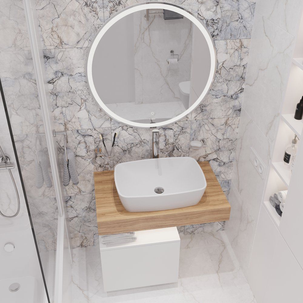 Зеркало STWORKI «Мальмё 77» станет стильным акцентом вашей ванной комнаты, впечатляя не только своей эстетикой, но и практичностью. Его безупречный круглый дизайн с холодной LED-подсветкой по периметру гармонично дополнит скандинавский или минималистичный интерьер. Это зеркало обеспечивает четкое и ясное отражение, идеально подходящее как для бритья, так и для макияжа. Сенсорная кнопка на стекле позволяет легко регулировать яркость света, создавая нужную атмосферу в помещении. Все электрические компоненты надежно защищены в пластиковом корпусе, а обработанные еврокромкой края делают использование безопасным и эстетически приятным.