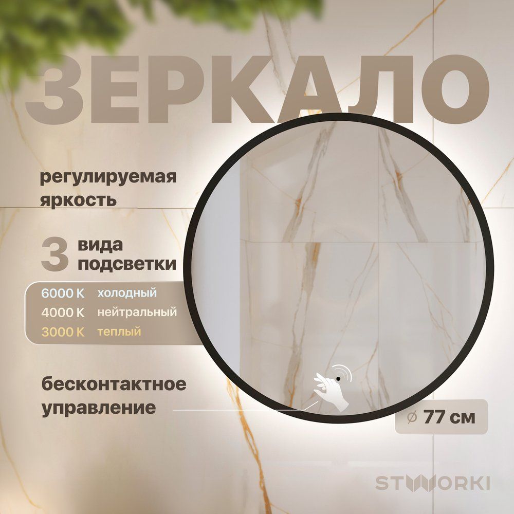 Круглое зеркало STWORKI Мосс 77 в элегантном черном цвете с подсветкой — это стильное и функциональное дополнение для вашей ванной комнаты. Изделие предлагает современный подход к освещению пространства, сочетая в себе высокое качество материала и инновационные технологии. Это не просто зеркало, это элемент интерьера, который создаст атмосферу уюта и совершенства в вашем доме.