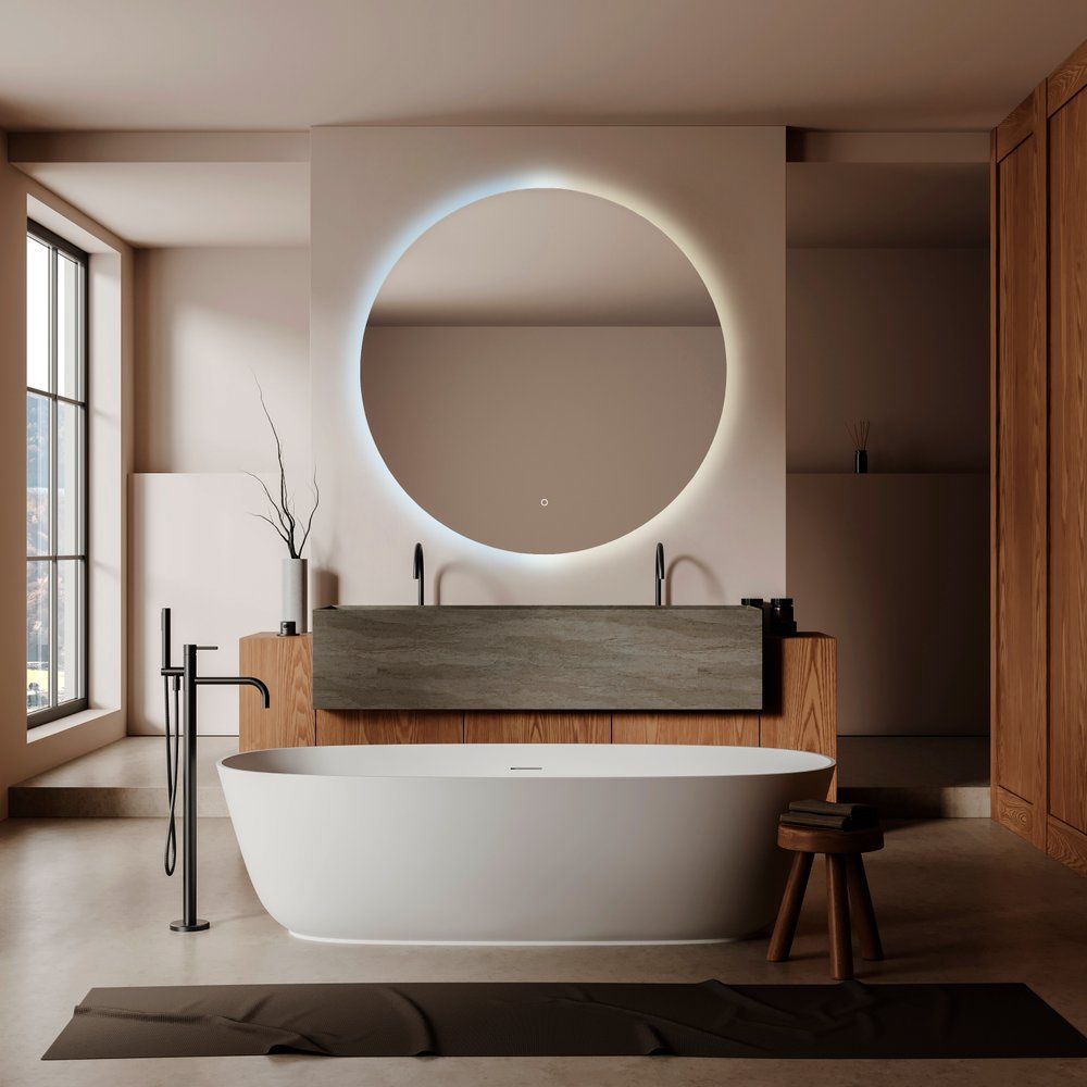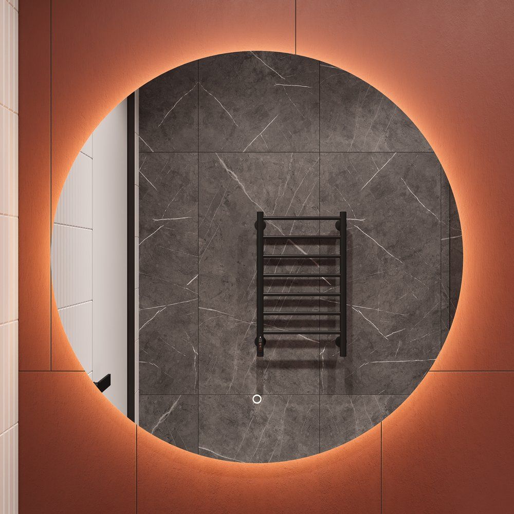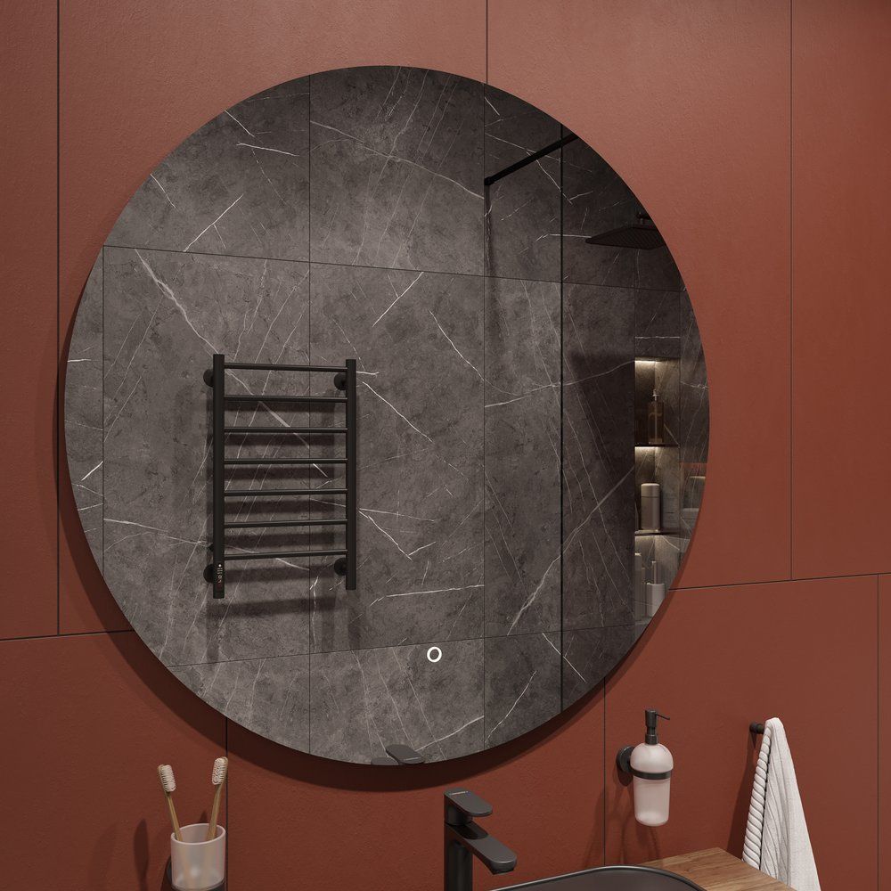 Круглое зеркало STWORKI Тронхейм имеет диаметр 100 см и оснащено современной светодиодной подсветкой, аккуратно скрытой за полотном. Управление подсветкой осуществляется легким касанием сенсорной кнопки, что обеспечивает удобство и надежность в эксплуатации. Зеркало поддерживает три режима градации света: теплый 3000 К, нейтральный 4000 К и холодный 6000 К, позволяя подобрать оптимальное освещение для любого времени суток.