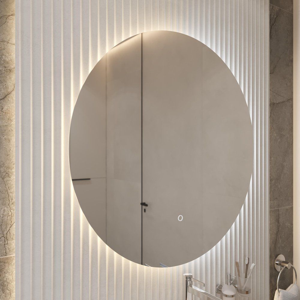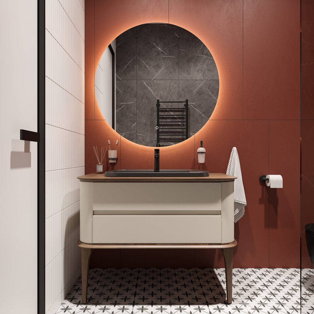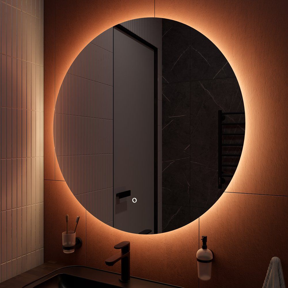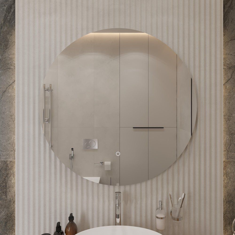 Круглое зеркало STWORKI Тронхейм имеет диаметр 100 см и оснащено современной светодиодной подсветкой, аккуратно скрытой за полотном. Управление подсветкой осуществляется легким касанием сенсорной кнопки, что обеспечивает удобство и надежность в эксплуатации. Зеркало поддерживает три режима градации света: теплый 3000 К, нейтральный 4000 К и холодный 6000 К, позволяя подобрать оптимальное освещение для любого времени суток.