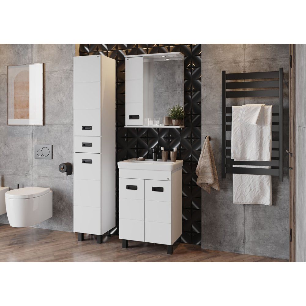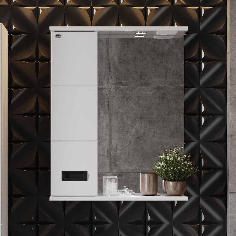 Зеркало Onika Балтика Black L 58 имеет размеры 58x16x71,2 см, что идеально подходит для современных ванных комнат. Корпус выполнен из ЛДСП и покрыт ламинатом, что обеспечивает прочность и долговечность изделия. Черная матовая фурнитура добавляет элегантности, в то время как встроенные подвесы позволяют легко и надежно закрепить зеркало на стене. Устройство также укомплектовано встроеннной розеткой и электровыключателем, что делает его использование еще более комфортным.