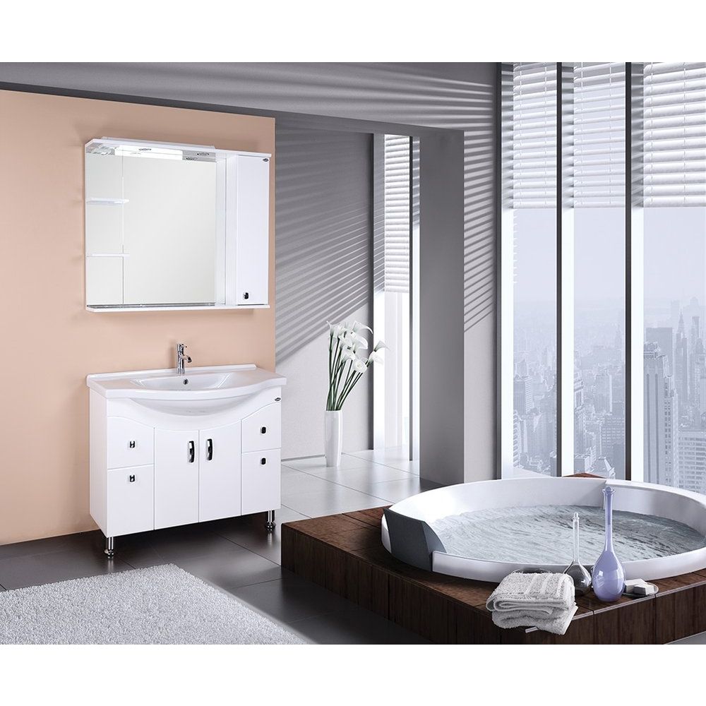 Зеркало имеет размер 100x17x85 см, что делает его подходящим для средних и больших ванных комнат. Корпус сделан из МДФ, покрытого пленкой, что защищает зеркало от влаги и обеспечивает легкость ухода. Оно оснащено механической кнопкой-электровыключателем и дополнительной розеткой для вашего удобства. Производится в России и сопровождается гарантией качества на 2 года.