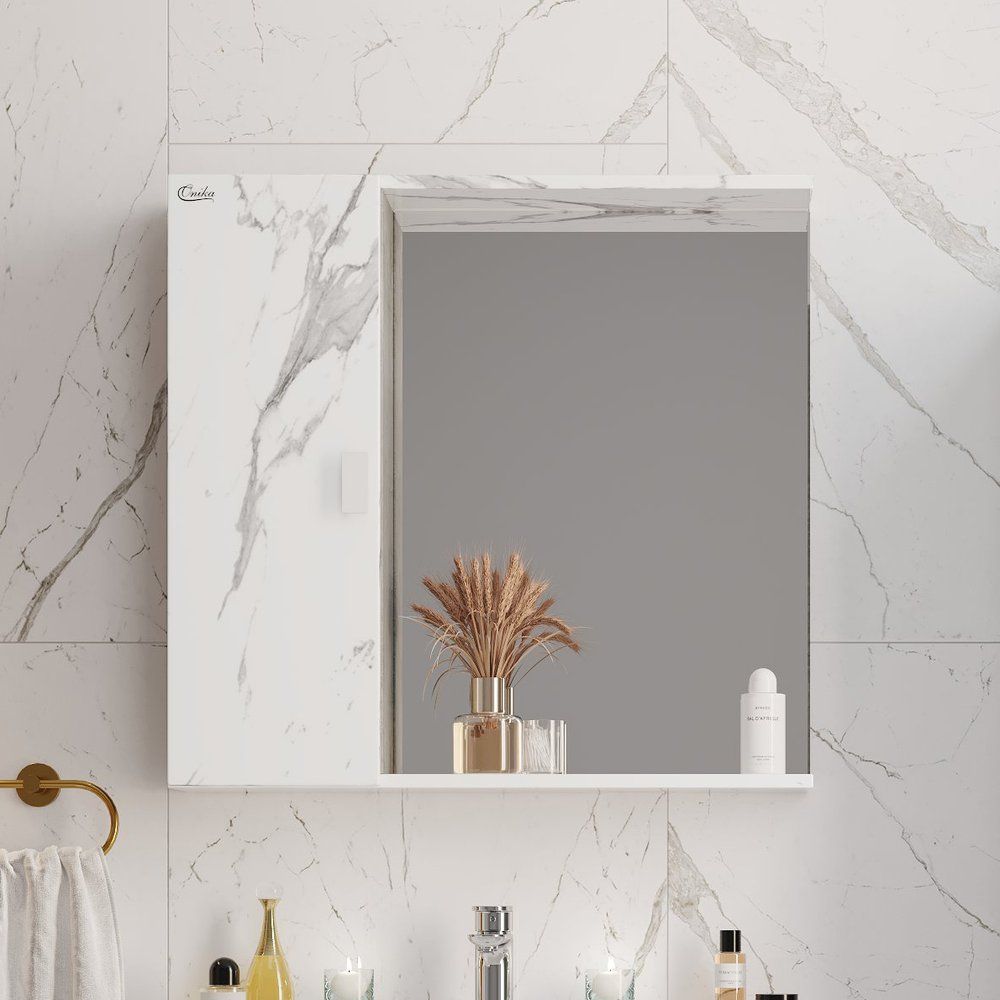 Это подвесное зеркало размером 75x15,5x71 см изготовлено из прочного ЛДСП с ламинированным покрытием, что добавляет устойчивость к влаге и износу. Белая фурнитура гармонично сочетается с корпусом, а механизм доводчика облегчает использование изделия. Зеркало оснащено подвесами для лёгкой установки. Изделие не содержит подсветки и выключателя, что делает его универсальным решением для любых интерьеров.