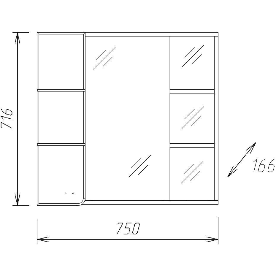 Размеры зеркала составляют 75 см в ширину, 16,6 см в глубину и 71,6 см в высоту, что делает его удобным для любых ванных комнат. Корпус выполнен из качественного ДСП и покрыт защитным ламинатом. Зеркало оснащено механическим электровыключателем и встроенной розеткой, что повышает его функциональность. Фурнитура из хрома и специальный механизм доводчика обеспечивают плавное закрывание, предотвращая износ и повреждения. Подвесы придают изделию дополнительное удобство при монтаже. Мебель поставляется в собранном виде, что экономит время и силы при установке.