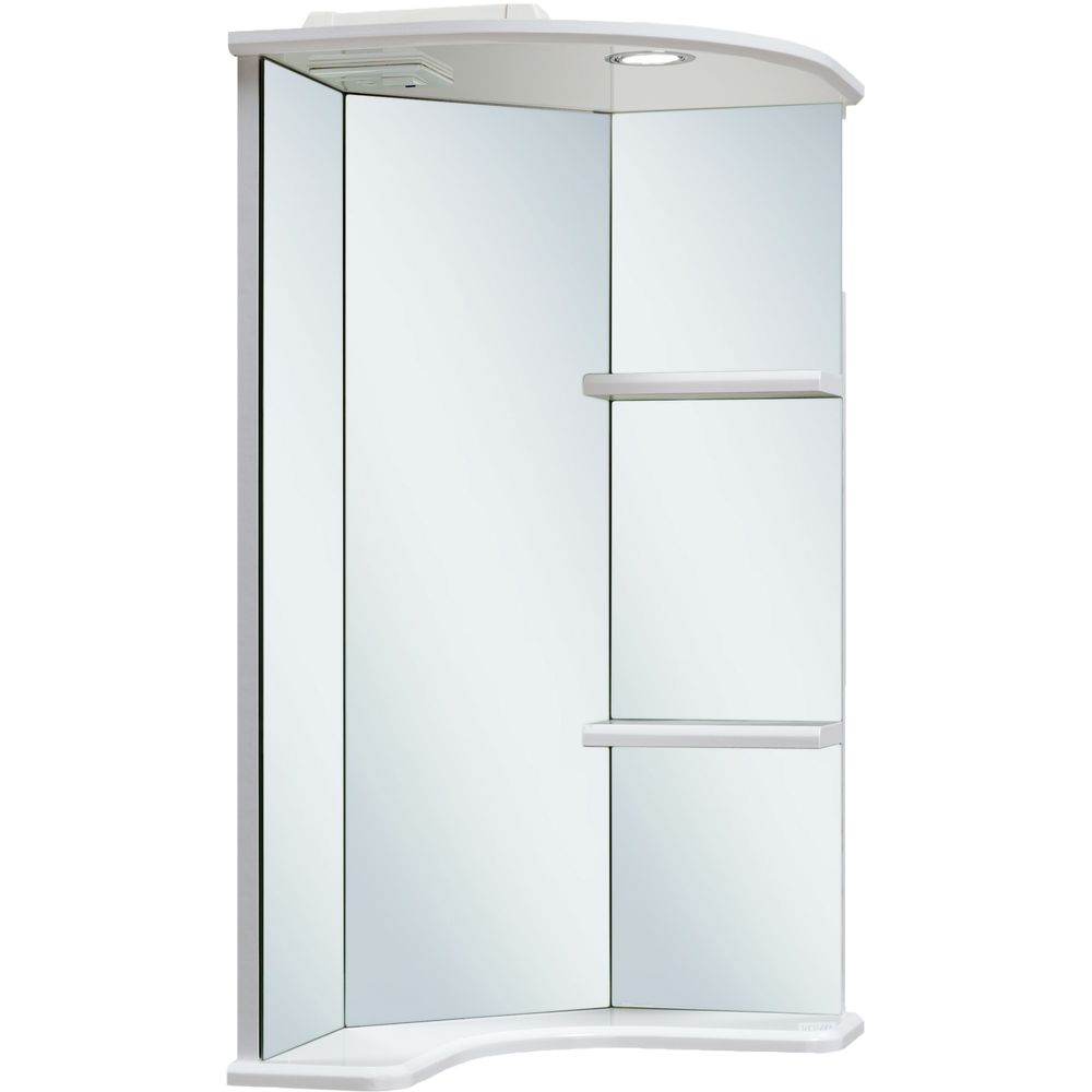 Зеркало Runo Браво 40 угловое имеет размеры 39x39x75 см, что делает его идеальным для небольших ванных комнат. Корпус выполнен из ДСП и покрыт ламинатом, что обеспечивает долговечность и устойчивость к воздействию влаги. Зеркало оснащено механической кнопкой для включения и выключения света, а также встроенной розеткой для удобного подключения различных устройств. Функциональные подвесы облегчают установку данного изделия.