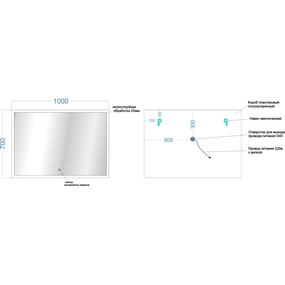 Зеркало имеет размер 100x2,5x70 см и изготовлено с прочным пластиковым корпусом. Оно оборудовано подвесами для удобной установки. Подсветка может быть отрегулирована для ваших нужд, предлагая как внутреннюю, так и внешнюю иллюминацию. Сенсорная кнопка управления делает использование простым и современным. В комплекте поставляется подробная инструкция по установке.