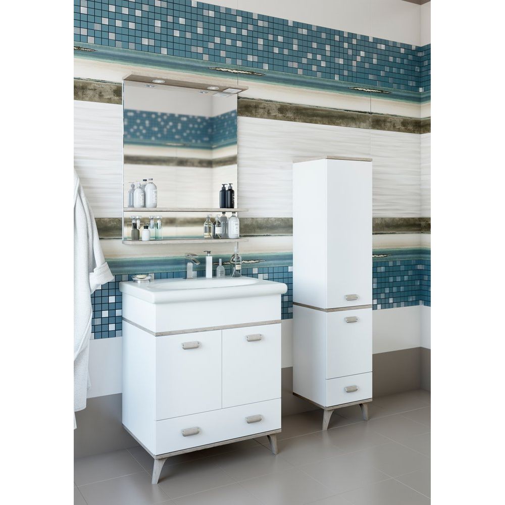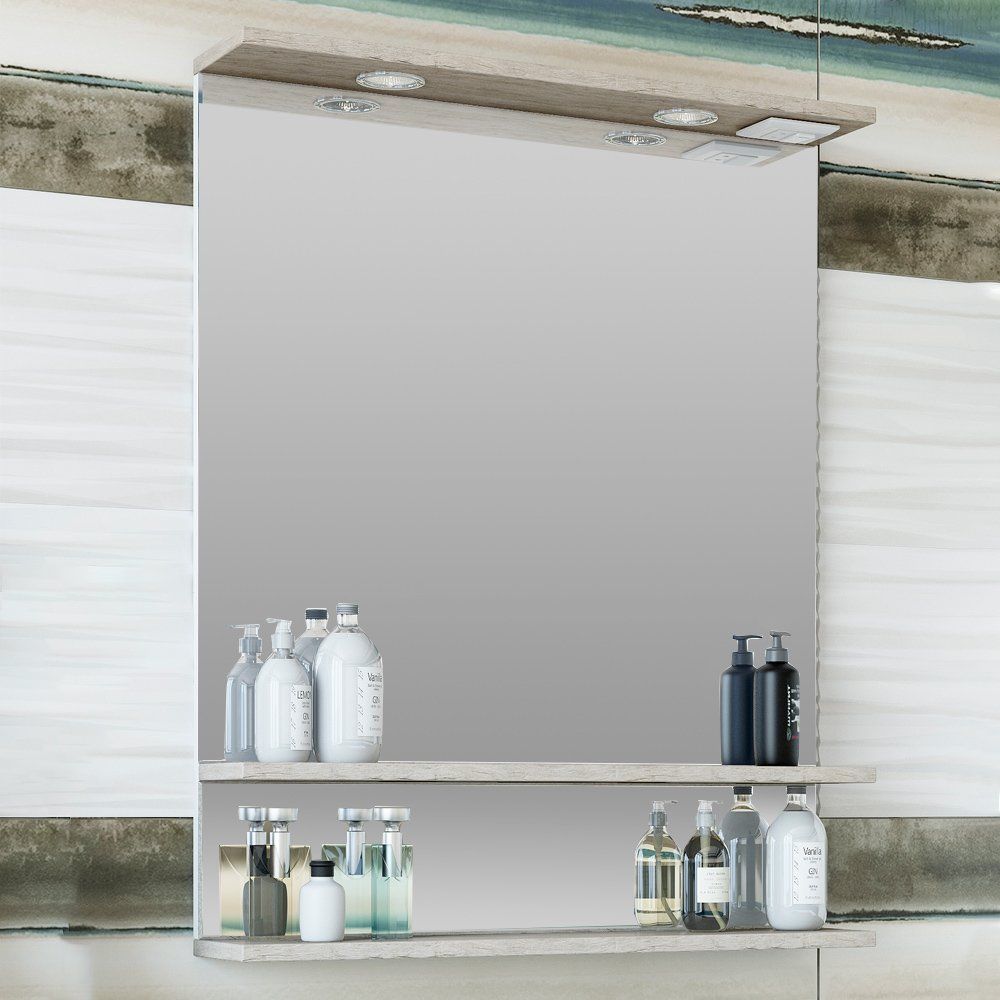 Зеркало Sanflor Бруно 70 – это изысканное сочетание утилитарности и современного дизайна. Завораживающий белый цвет в сочетании с текстурой «орегон» создают атмосферу изящества и уюта в вашей ванной комнате. Благодаря встроенной подсветке, данное зеркало не только расширяет пространство, но и становится полезным инструментом для повседневного использования. Полка, предусмотренная в конструкции, добавляет дополнительное удобство, позволяя разместить на ней необходимые мелочи для ванной.
