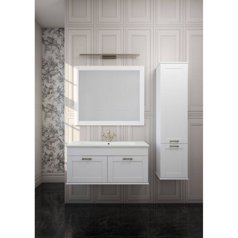 Зеркало имеет размеры 93,8 см в ширину, 2 см в глубину и 80 см в высоту, что делает его подходящим даже для небольших ванных комнат. Корпус изготовлен из МДФ и покрыт эмалью, что обеспечивает долговечность и стойкость к воздействию влаги. Зеркало поставляется без подсветки, но оснащено подвесами для легкой установки. Продукция изготавливается в России и сопровождается гарантией на 2 года.