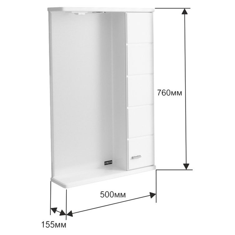 Зеркало-шкаф СаНта Омега 50 R – это не только стильное дополнение к вашей ванной комнате, но и функциональное решение для хранения. Его влагостойкий фасад, покрытый ПВХ-пленкой, идеально подходит для установки в помещениях с повышенной влажностью. Вместительное боковое отделение с двумя полками поможет организовать ваши гигиенические принадлежности, обеспечивая порядок и удобный доступ. Нежное освещение от встроенного точечного галогенного светильника добавляет комфорта во время утренних и вечерних ритуалов, создавая уютную атмосферу.