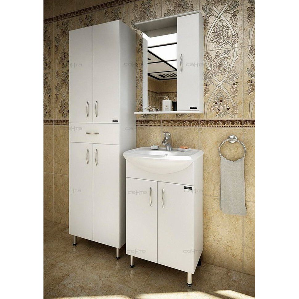 Если вы хотите освежить интерьер ванной комнаты и обеспечить функциональное хранение необходимых мелочей, Зеркало СаНта Прима 50 — идеальный вариант для вас. Это зеркало-шкаф не только красиво оформляет пространство, но и обеспечивает удобный доступ к необходимым предметам благодаря надежной подвесной конструкции. Его влагостойкая поверхность защищена глянцевой ПВХ-пленкой, а стильность и долговечность гарантированы благодаря продуманному дизайну и качественным материалам.