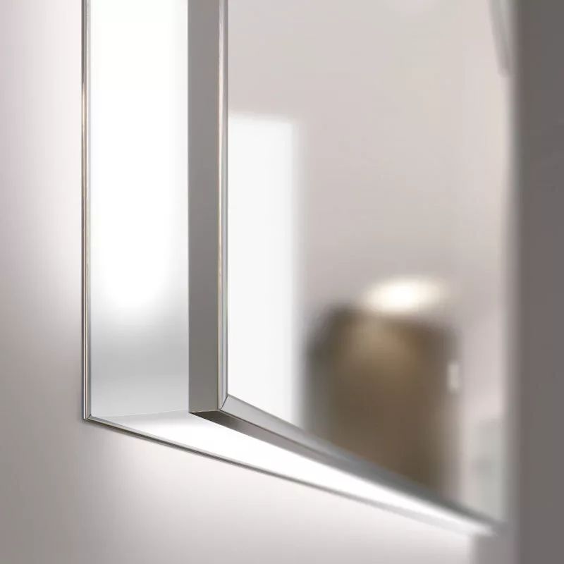 Зеркало имеет размеры 70х4х60 см и выполнено с алюминиевым корпусом, который гарантирует долговечность и устойчивость к влажности. Подсветка находится как в полотне, так и за ним, создавая мягкое рассеянное свечение. Управление осуществляется сенсорным выключателем — достаточно легкого касания для включения или выключения света. В комплекте предусмотрены подвесы для удобного монтажа.