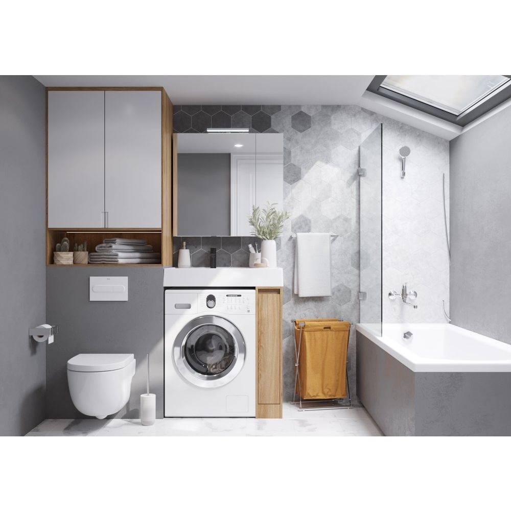 Пожалуйста, учитывайте, что светильник для этого зеркала-шкафа приобретается отдельно, позволяя вам выбрать освещение по вашему вкусу и стилю оформления. Кроме того, мебель поставляется в собранном виде, что значительно ускоряет процесс установки и позволяет сразу приступить к её использованию.