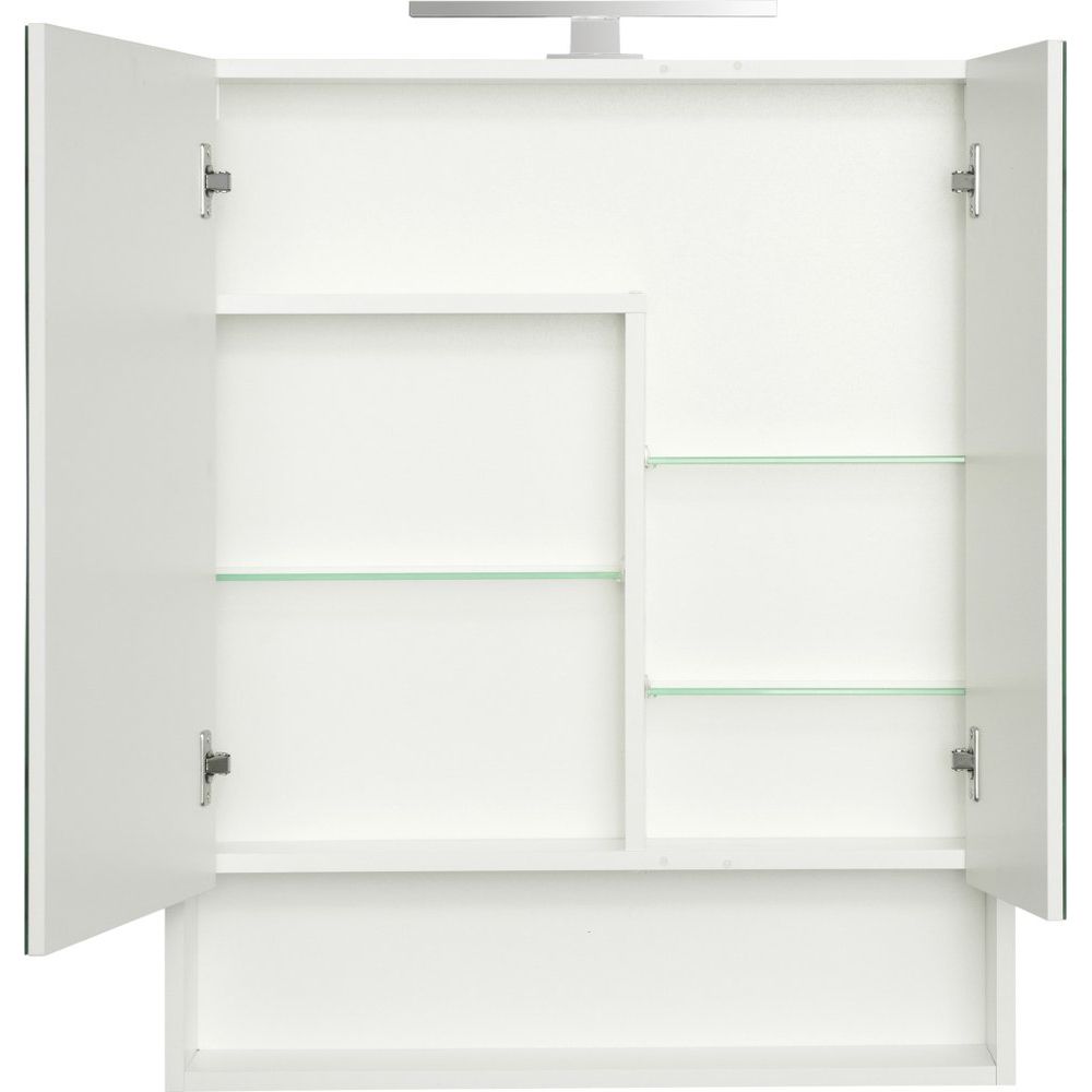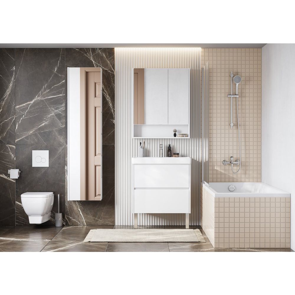 Широкие возможности хранения предоставляют полки, укрытые за зеркальной дверцей, которые помогут организовать пространство ванной комнаты. Ширина зеркала-шкафа составляет 70 см, глубина – 13 см, а высота – 85 см, что делает его компактным вариантом даже для небольших помещений. Каркас выполнен из ЛДСП, что обеспечивает прочность и устойчивость к воздействию влаги. Отсутствие встроенной подсветки может стать преимуществом для тех, кто предпочитает мягкий, равномерный свет в интерьере.