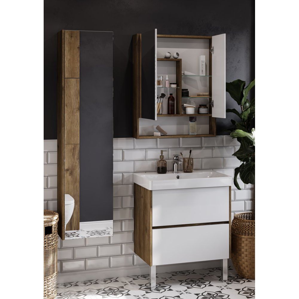 Зеркало-шкаф AQUATON Сканди 70 дуб рустикальный — это стильное, функциональное решение для вашей ванной комнаты, предлагающее не только красивое отражение, но и достаточно места для хранения необходимых ванных принадлежностей. Этот продукт идеально впишется в любой интерьер благодаря современному дизайну и универсальному цветовому решению, делая ваше утро бодрым и организованным.