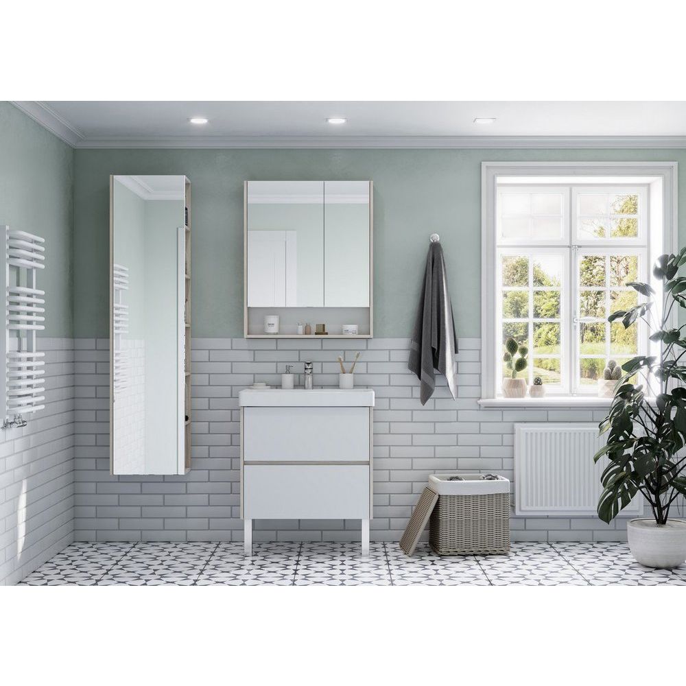 Предлагаем вашему вниманию элегантное и функциональное решение для вашей ванной комнаты — зеркало-шкаф AQUATON Сканди 70 дуб верона. Эта модель сочетает в себе современный дизайн и практичность, которые непременно оценят ценители скандинавского стиля. Изготовленное в России, изделие воплощает качество и надежность.