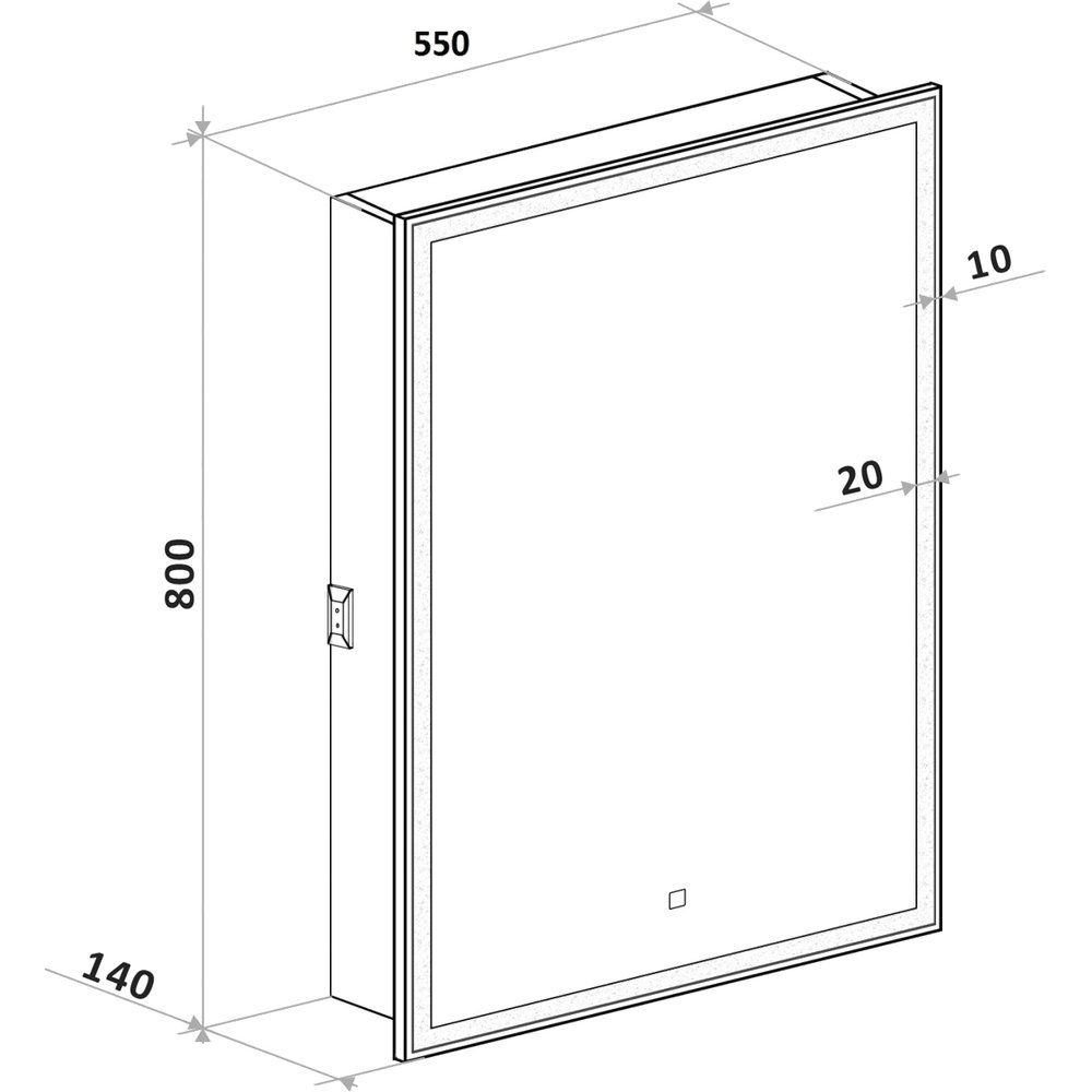 Зеркало-шкаф имеет размеры 55x14x80 см и выполнено из МДФ с плёночным покрытием для дополнительной защиты. Оснащено встроенной регулируемой подсветкой по всему периметру фасада. Управление осуществляется через сенсорный выключатель, позволяющий изменять яркость освещения. Модель также включает механизм доводчика для плавного закрывания дверцы и прочные полки толщиной 5 мм. Продукция имеет гарантию 1 год и предназначена для подвесного монтажа.