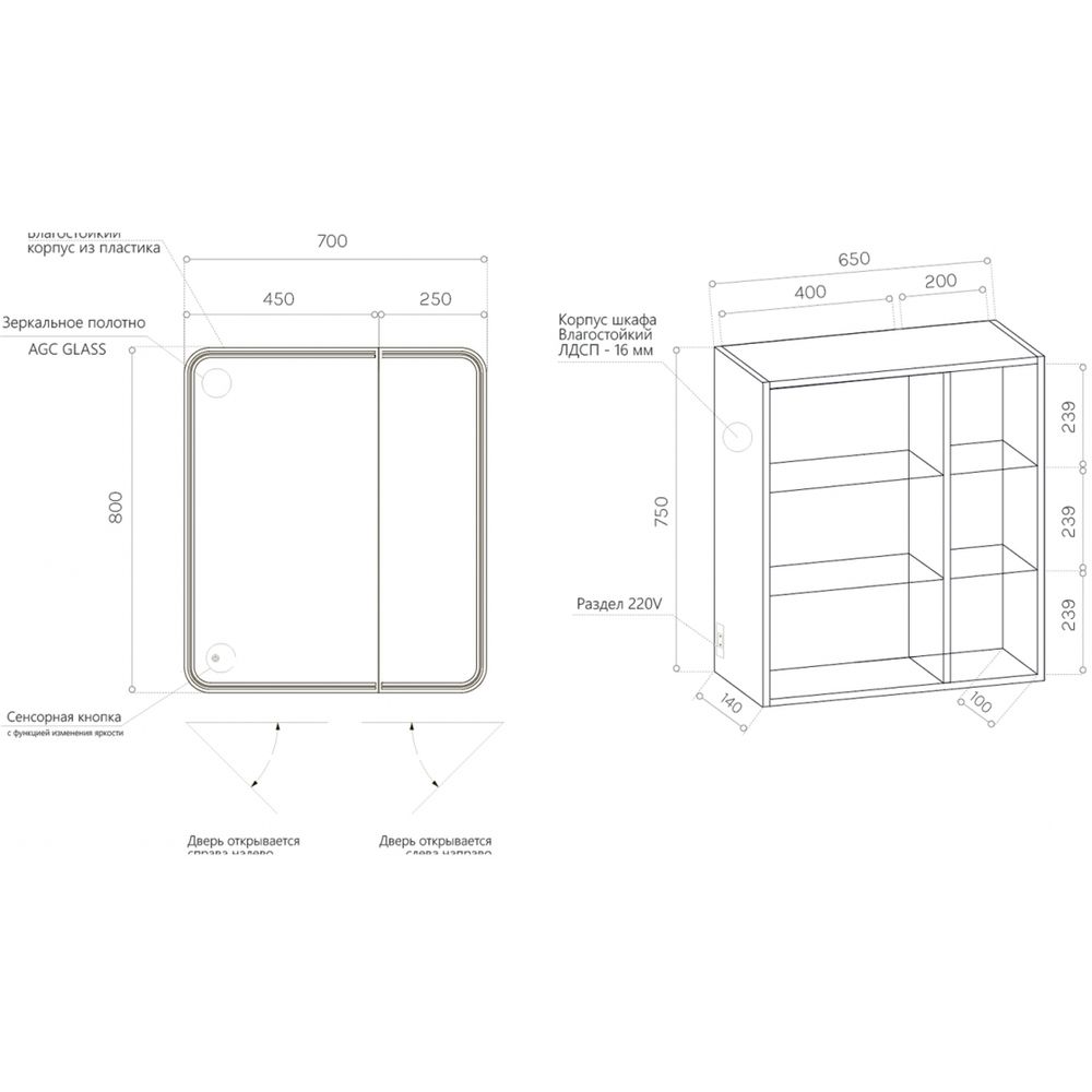 Зеркало-шкаф Art&Max Verona 70 L имеет размеры 70x14x80 см, идеально подходящие для различных планировок ванных комнат. Модель выполнена из прочного ЛДСП и оснащена настроенной подсветкой, спрятанной за полотном зеркала, что позволяет создать равномерное освещение без бликов. Сенсорный выключатель, управляемый лёгким касанием, добавляет удобства при использовании, а механизм доводчика обеспечивает плавное закрывание. Дополнительная встроенная розетка позволяет подключить электроустройства без дополнительных усилий.