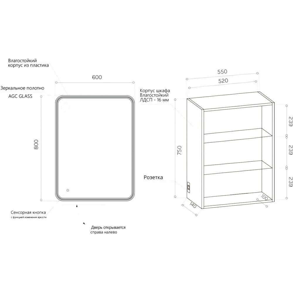 Зеркало-шкаф Art&Max Verona L 60х80 — это не просто функциональный элемент интерьера вашей ванной комнаты, а настоящая находка для тех, кто ценит стиль и практичность. Белое зеркало с LED-подсветкой создает мягкое освещение с температурой 6000К, что идеально подходит для утреннего макияжа или вечернего ухода за кожей. Благодаря влагостойкому стеклу от AGC и уникальной светодиодной ленте, комплект работает надежно и эффективно.