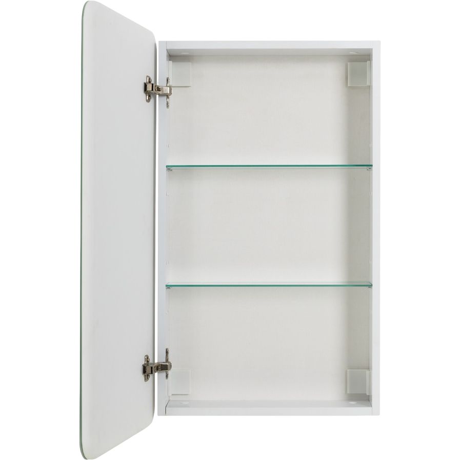 Габариты изделия составляют 50x15,5x80 см, что позволяет грамотно использовать пространство. Корпус выполнен из белого ЛДСП, облицованного прочной пленкой, что обеспечивает долговечность и эстетику. Зеркало оснащено SMD 3528 лентой с индексом защиты IP44, создающей холодное освещение в 6000 К. Сенсорный выключатель позволяет управлять подсветкой легким касанием, добавляя дополнительный элемент удобства. Полки изготовлены из стекла и могут регулироваться по высоте, они удерживаются полкодержателями с силиконовыми накладками, что минимизирует вибрации и шум при использовании. Установить зеркало-шкаф просто благодаря прилагаемому крепежу.