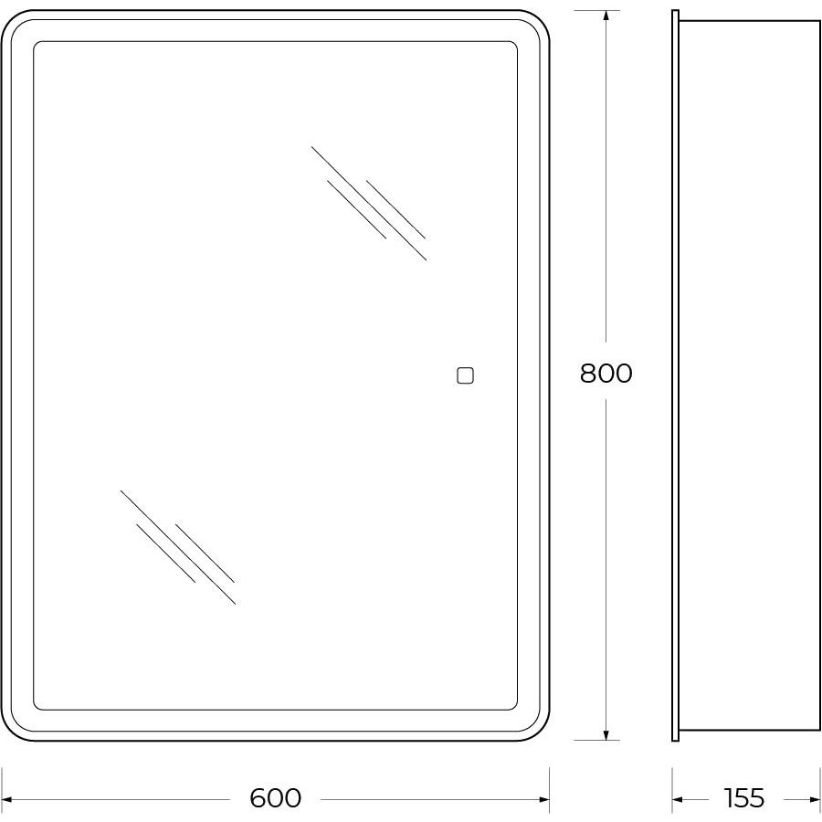 Зеркальный шкаф BelBagno Marino обладает размерами 60x15,5x80 см, что делает его идеальным выбором для небольших и средних помещений. Корпус выполнен из белого ЛДСП и покрыт защитной пленкой, что обеспечивает долговечность и устойчивость к влаге. Одна распашная дверь дополняется механизмом доводчика для мягкого закрывания. Встроенная светодиодная SMD 3528 (IP44, 12V, 6000K) подсветка с холодным светом гарантирует равномерное освещение, а сенсорный выключатель — легкое управление.