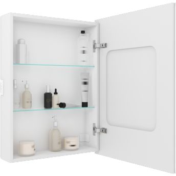 Потребляемая мощность составляет 24 Вт, что является экономичным решением для домашнего использования. Размеры зеркала-шкафа составляют 60х15х80 см, а корпус выполнен из высококачественного МДФ с покрытием из защитной плёнки.