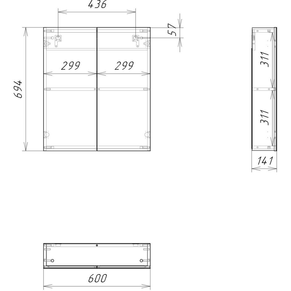 Зеркало-шкаф DIWO Архангельск имеет следующие размеры: ширина — 60 см, глубина — 14,1 см, высота — 69,4 см. Корпус изготовлен из ламинированного ЛДСП, который устойчив к влаге и обеспечивает долговечность эксплуатации. Отсутствие подсветки делает его более экономичным и подходящим для установки с внешним освещением. Пленочное или ламинированное покрытие защищает шкаф от повреждений и облегчает уход за ним. Механизм доводчика гарантирует плавное и бесшумное закрывание дверей, а дополнительные подвесы обеспечивают надежное крепление.