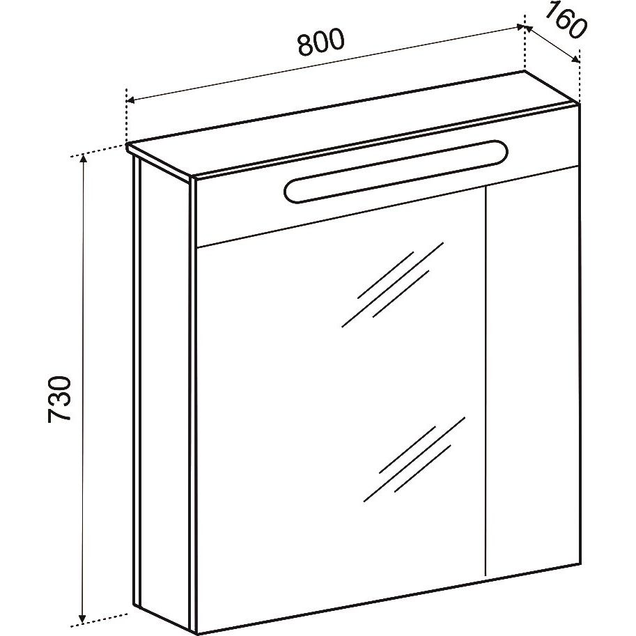 Зеркало-шкаф Emmy из коллекции Сигма имеет размеры 80x16x73 см, что делает его подходящим даже для небольших ванных комнат. Корпус выполнен из ЛДСП и покрыт пленкой для дополнительной защиты от влаги. Подвесная конструкция дополнена механизмом доводчика, обеспечивающим плавное закрывание дверец. Встроенная подсветка и механический электровыключатель вносят дополнительное удобство, а наличие розетки делает зеркало-шкаф по-настоящему универсальным элементом вашей ванной комнаты.
