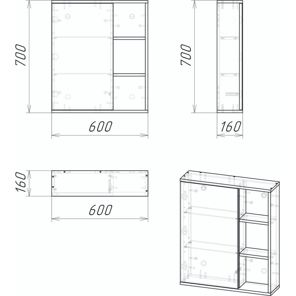 Зеркало-шкаф имеет размеры 60x16x70 см и выполнено из прочного ЛДСП, что придаёт конструкции устойчивость и надёжность. Покрытие из ламината не только защищает каркас, но и усиливает визуальный эффект натурального дерева. Модель поставляется без подсветки, но это компенсируется её функциональным дизайном и подвесной структурой. Немецкое качество подтверждено гарантией на 2 года.