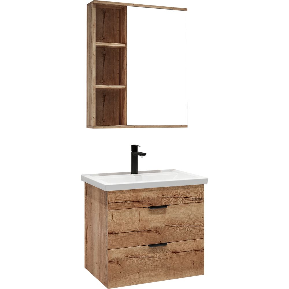 Зеркало-шкаф Grossman Форта 60 дуб галифакс — это сочетание изысканного дизайна и практичности. Этот универсальный элемент декора несомненно украсит вашу ванную комнату, добавив ей функциональности и стиля. Созданные в Германии с учётом высоких стандартов, наши зеркала-шкафы отличаются долговечностью и простотой в уходе.