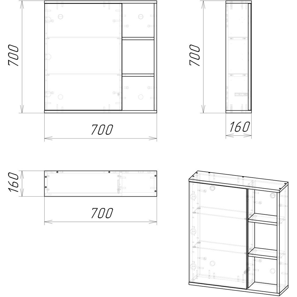 Зеркало-шкаф имеет размеры 70x16x70 см, что позволяет ему гармонично вписаться даже в компактные помещения. Корпус изготовлен из ЛДСП, что гарантирует долговечность и устойчивость к влажной среде ванной. Ламинатное покрытие добавляет дополнительную защиту и легкость в уходе. Модель поставляется без подсветки, что делает ее идеальной для дневного освещения. Подвесы обеспечивают надежную фиксацию без лишних усилий.