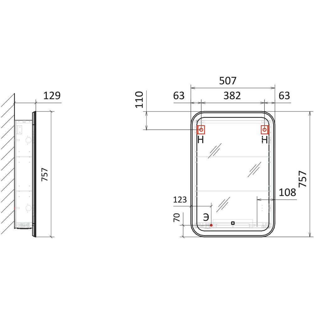 Зеркало-шкаф Jorno Modul 50 имеет размеры 50,7x12,9x75,7 см, что делает его оптимальным выбором для ванн любых размеров. Корпус выполнен из прочного ЛДСП с ламинатным покрытием, которое защищает изделие от влаги и продлевает срок службы. Встроенная подсветка активируется легким касанием сенсорной кнопки, добавляя комфорта в использование. Также зеркало оснащено встроенной розеткой, что очень удобно для подключения фенов или зарядных устройств. Установка шкафа осуществляется на подвесах, что обеспечивает надежность и простоту монтажных работ.
