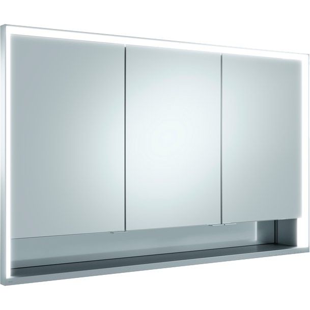 Позвольте представить вам стильное и функциональное решение для вашей ванной комнаты — зеркало-шкаф Keuco Royal Lumos 120. Этот изысканный аксессуар, встраиваемый в интерьер, не только заменит привычное зеркало, но и обеспечит дополнительное пространство для хранения и улучшенную освещённость вашего ежедневного ухода. Изготовленное из анодированного серебристого алюминия, оно оснащено тремя поворотными дверцами с двусторонним зеркальным покрытием и зеркальной задней стенкой, создающими удивительное ощущение простора.